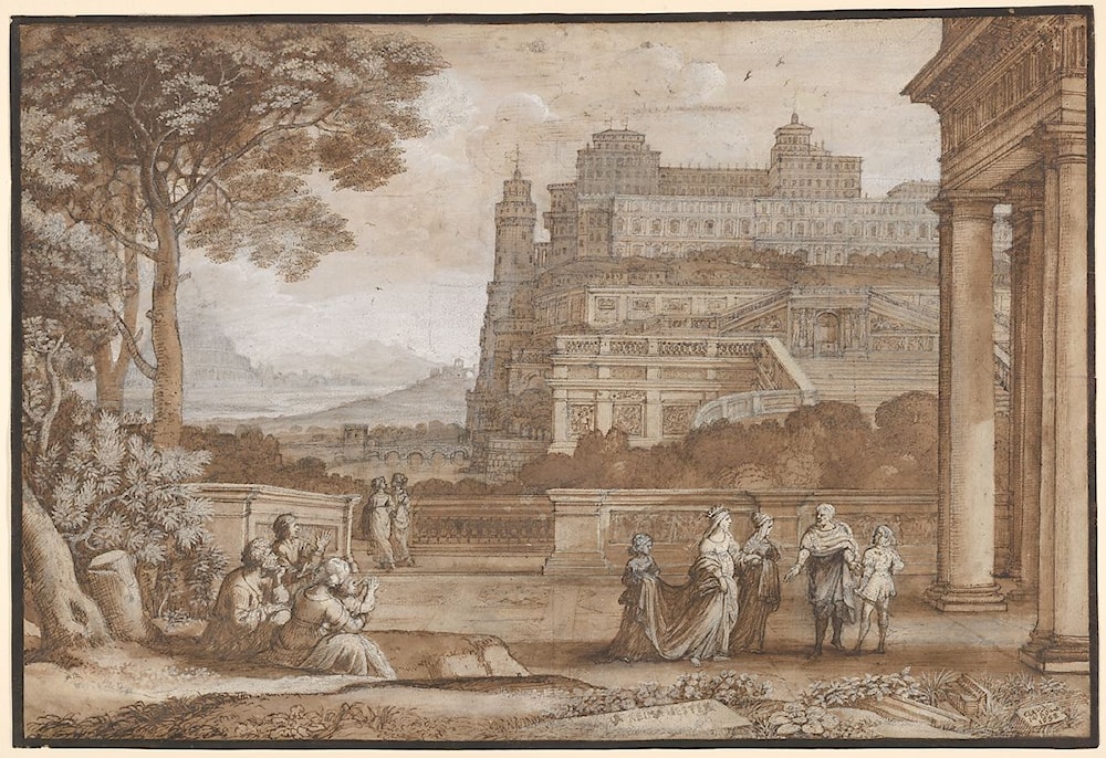 Pen and brown ink; brown wash over black chalk; heightened with white, 1658