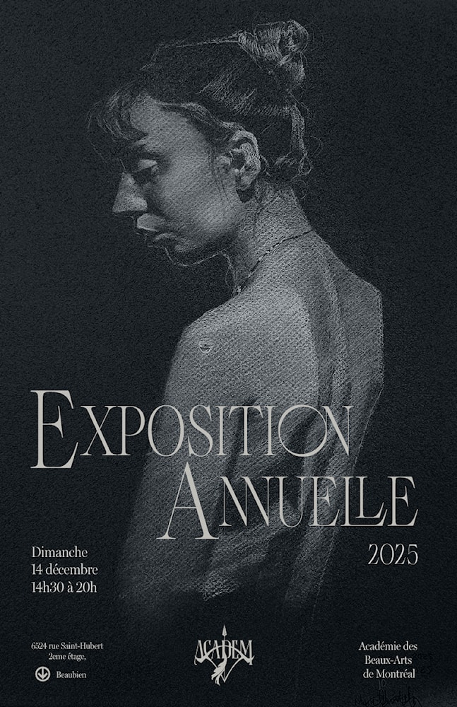 The Académie des Beaux-Arts de Montréal (ACADEM) is a prestigious non-profit institution dedicated to reviving the rigor and beauty of classical art training. Since its founding in 2014, it has become a cornerstone of figurative art education in Canada, offering intensive programs in drawing, painting, and sculpture. Guided by master instructors, students of all levels develop technical excellence, artistic vision, and a deep respect for traditional craftsmanship. Located in the heart of Montréal, it offers a rich, immersive environment where timeless techniques meet contemporary creativity.