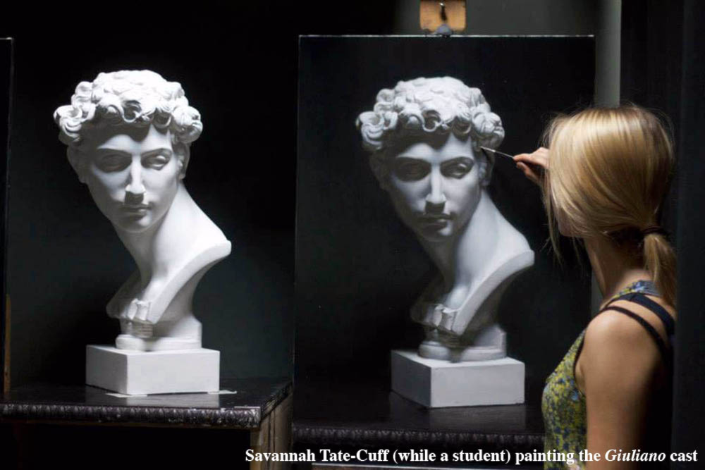 Work begins from specially prepared drawings that quickly and effectively give a command of shape, proportion and tonal rendering. These skills are then applied to studies from plaster casts, first in charcoal, then in oil paint.