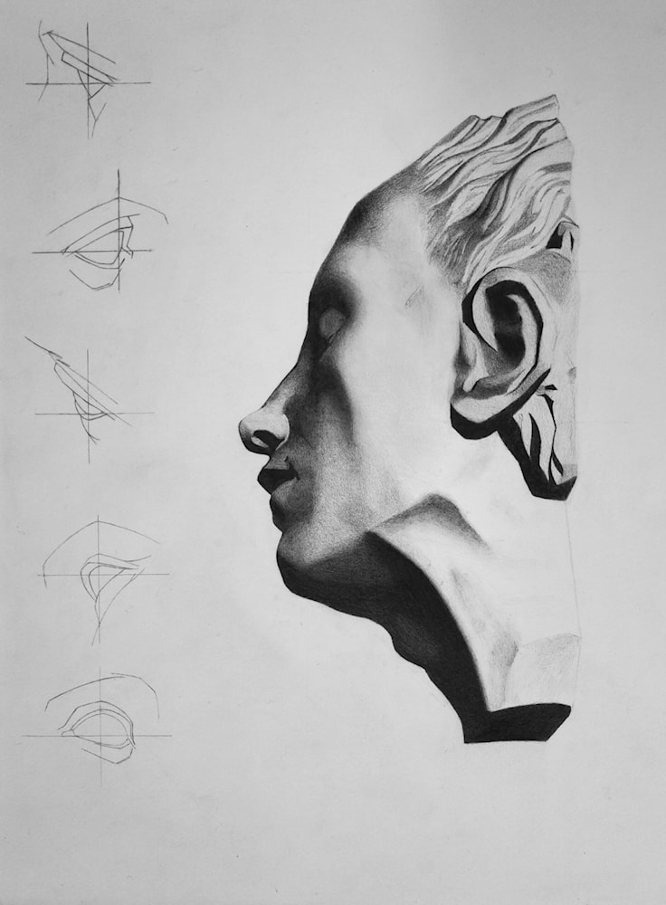 Throughout the course of their studies, students are introduced to the works and techniques of Leondardo da Vinci, Michelangelo, Raphael, Sargent, Zorn, Sorolla, Rembrandt, Bouguereau, Richard Schmid, as well as living masters including Jeremy Lipking, Odd Nerdrum, Steven Assael and the current Atelier movements of works from the artists at institutions like Grand Central Atelier, Florence Academy of Art, and Art Renewal Center.