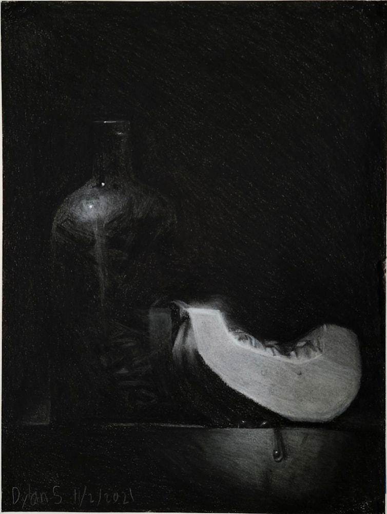 Students use a limited palette to later progress to a full palette in oil painting techniques including, but not limited to, Alla Prima (Wet on Wet), Open/Closed Grisaille, and Indirect Painting.