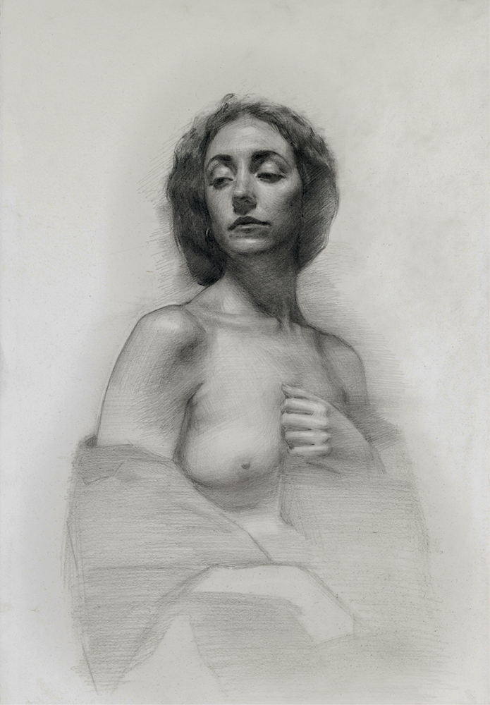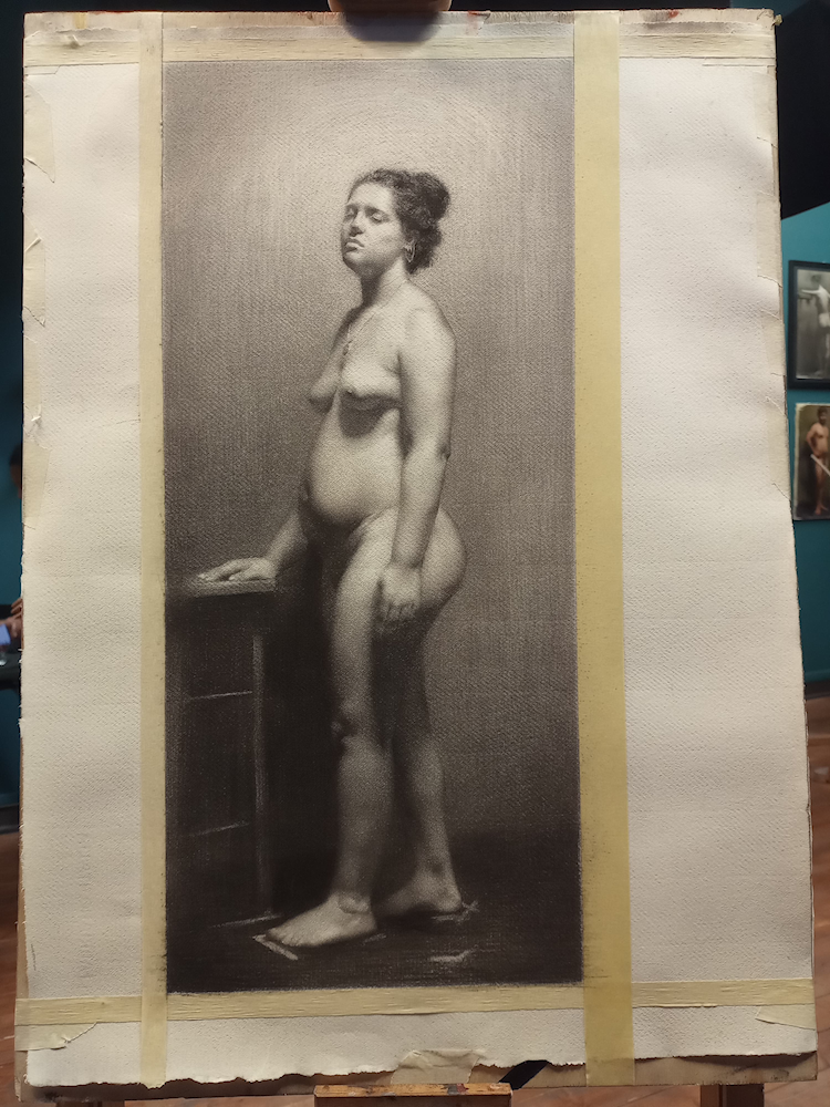 Our course guides students through observation drawing, color theory, the comparative and sight-size method, short and long poses from life, composition, chiaroscuro study, artistic anatomy, and the comprehensive study of the human body. Furthermore, students delve into grisaille painting, Bargue copies, and master copies. These studies are rigorously complemented by practical exercises in space, perspective, volumetric rendering, canvas preparation and transferring drawings.