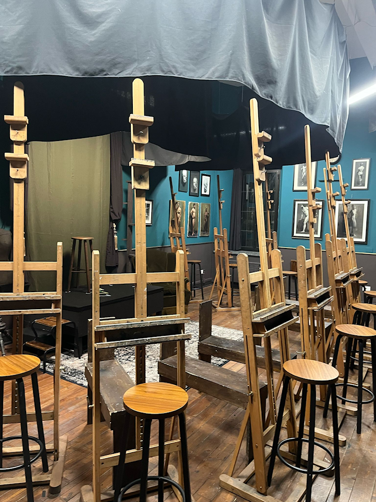 The study environment is safe, orderly, and entirely dedicated to artistic practice. When you walk into our studio, you will find spaces fully equipped for easel work, drawing, oil painting, and figure study, creating an ideal setting for focused, classical training.