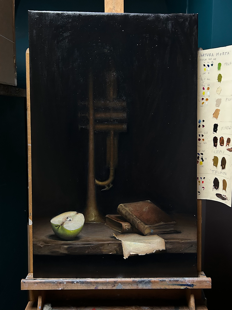 The director, Simone Nania, was born into a family of artists and has been passionately dedicated to drawing and painting his entire life. A graduate of the Angel Academy of Art, he brings both a lifelong devotion and a wealth of classical knowledge to the studio. He is joined by Daniele Pillittu, a former student of the school and a graduate of the Brera Academy of Fine Arts, who serves as an accomplished painter and teacher. Together, they foster an environment of high artistic standards.