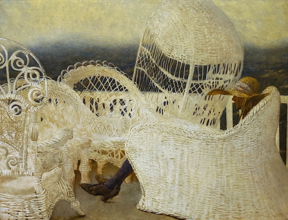 Betsy James Wyeth (1921-2020) devoted much of her adult life to supporting the work of the three artists in the family that she became part of: Andrew Wyeth, whom she married in 1939; his father, Newell Convers Wyeth; and James (Jamie) Browning Wyeth, one of her two sons with Andrew. Much less known is Betsy Wyeth’s passion for collecting work by each of them. Over the years she assembled a rich and varied collection of paintings, drawings, and watercolors depicting subjects from the two places that dominated their careers: the area around their homes and studios in Chadds Ford, Pennsylvania, and in Midcoast Maine, where the extended Wyeth family has summered since the 1920s. Upon Betsy’s passing in 2020, the Farnsworth Art Museum received a bequest of twenty-seven works by this distinguished group of American artists: six by N.C., two by Andrew, and nineteen by Jamie.